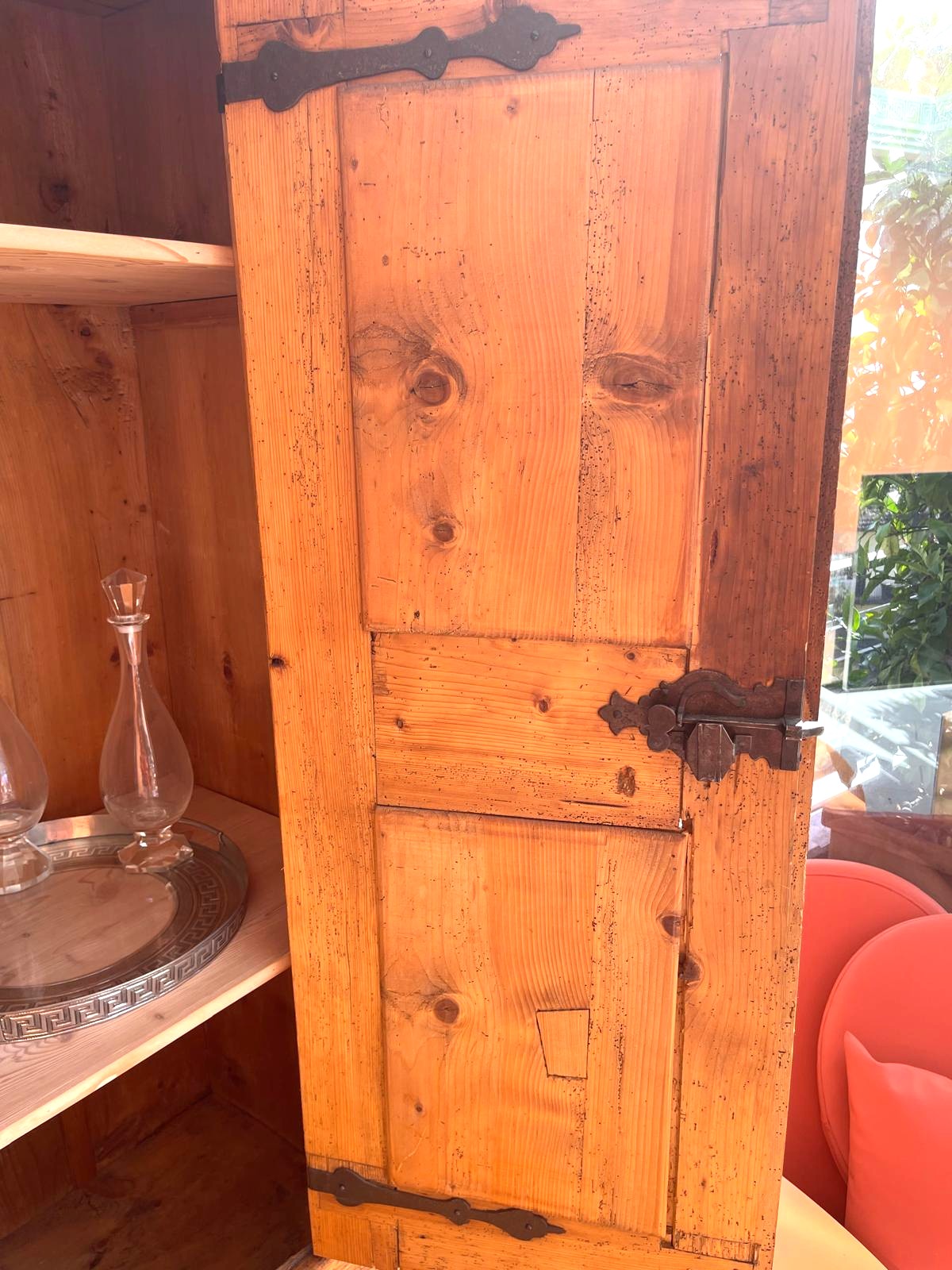 Dieser sehr dekorative Schrank ist ca. 700 Jahre alt. Besonders ein Hingucker sind die alten Beschläge und Türschloss. Zwei Türen. Fünf Tablare verstellbar. Höhe: 185 cm, Breite: 174 cm.
